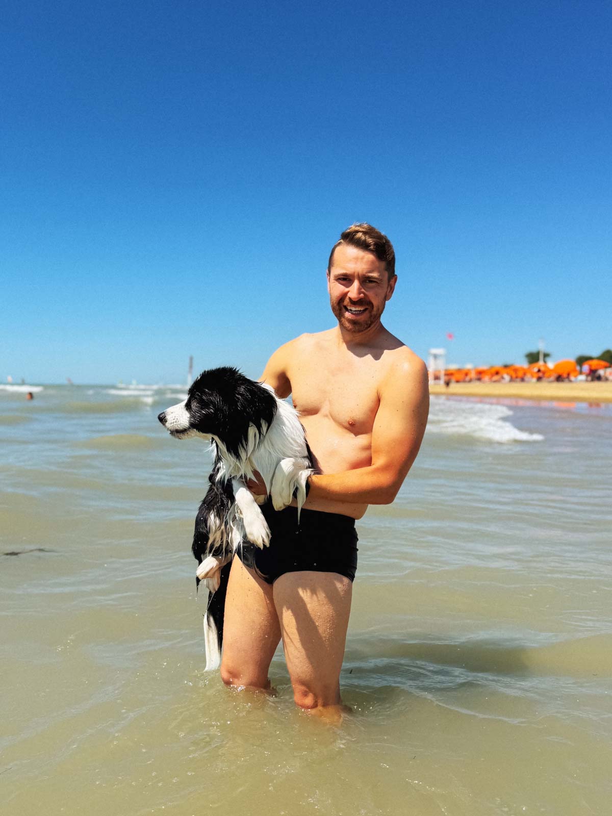 Kolejne dni przynosiły coraz to nowe atrakcje. Jednym z pierwszych miejsc, które odwiedziliśmy, była plaża dla psów Spiaggia di Pluto, oddalona zaledwie o pięć minut spacerem od naszego resortu. To miejsce, które zachwyca nie tylko właścicieli czworonogów – Aria dostała własny leżak, miseczkę i smycz, a my mogliśmy cieszyć się czystą, ciepłą wodą Adriatyku i spokojną atmosferą. Wrażenie robiła dbałość o każdy szczegół – plaża była zadbana, a wokół panował porządek, dzięki czemu mogliśmy w pełni odpocząć.