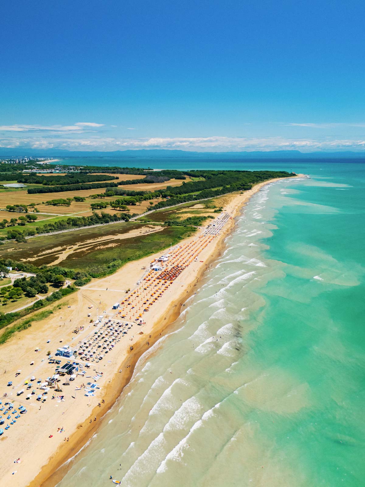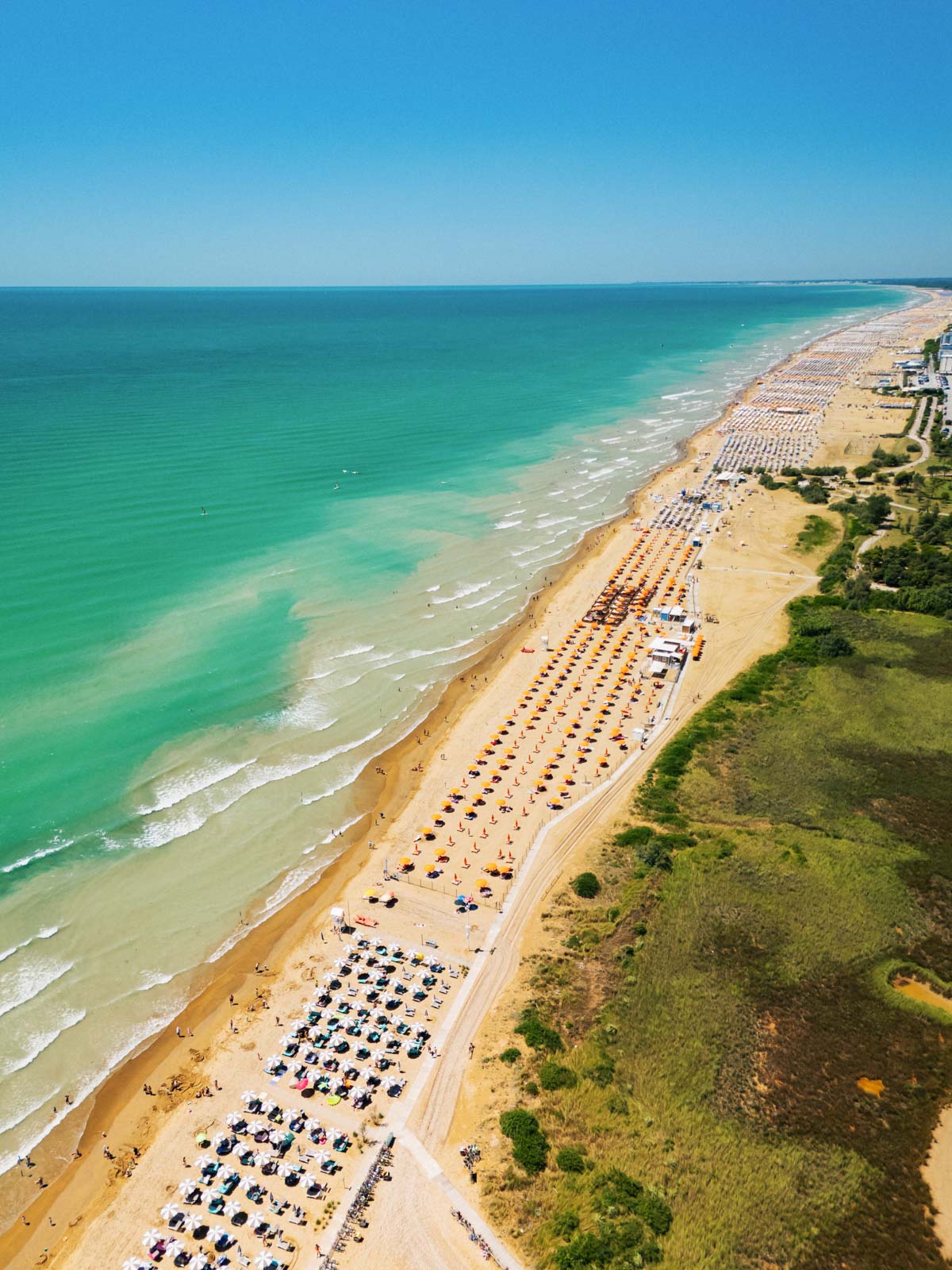 Bibione to popularna miejscowość wypoczynkowa położona w północnych Włoszech, w regionie Wenecja Euganejska, na malowniczym półwyspie między rzeką Tagliamento a laguną. To jedno z najchętniej odwiedzanych nadmorskich kurortów we Włoszech – szczególnie przez rodziny z dziećmi oraz miłośników aktywnego wypoczynku. Miasteczko słynie przede wszystkim z szerokich, piaszczystych plaż, które rozciągają się na długości aż 8 kilometrów i są regularnie nagradzane certyfikatem „Błękitnej Flagi” za czystość i wysoką jakość usług.