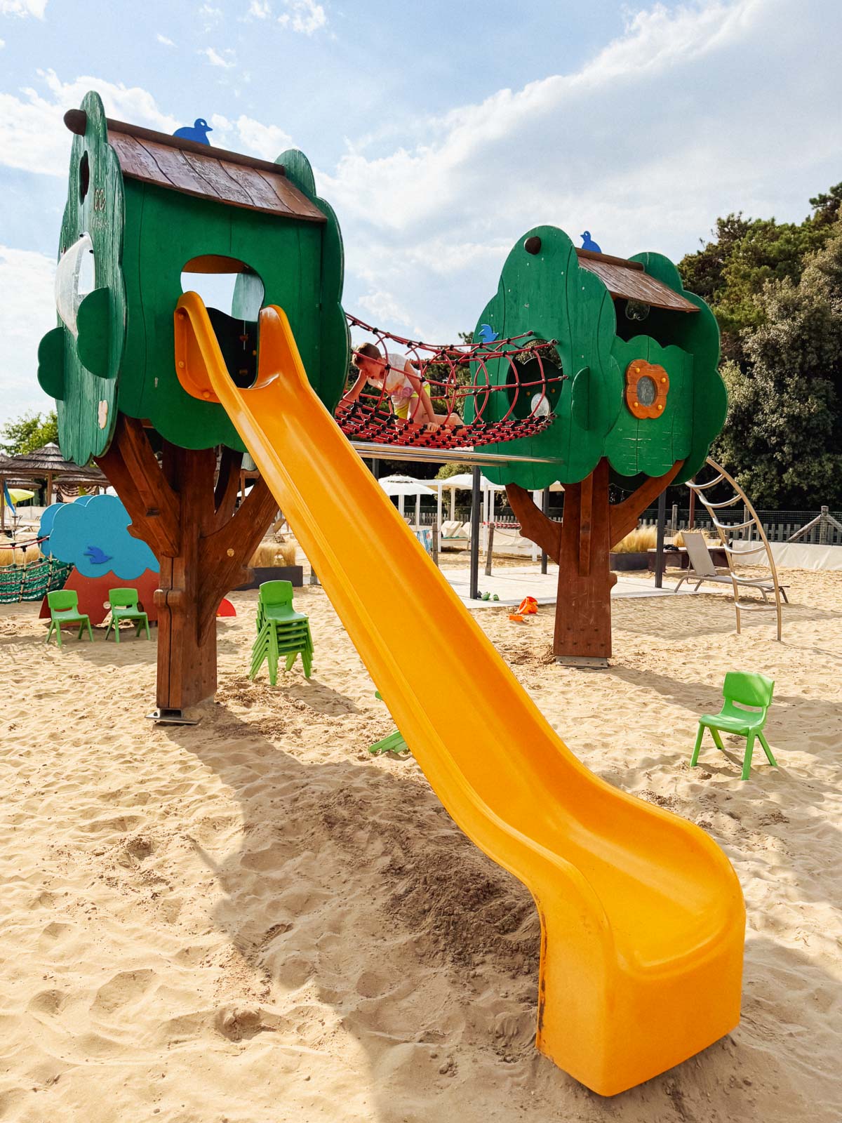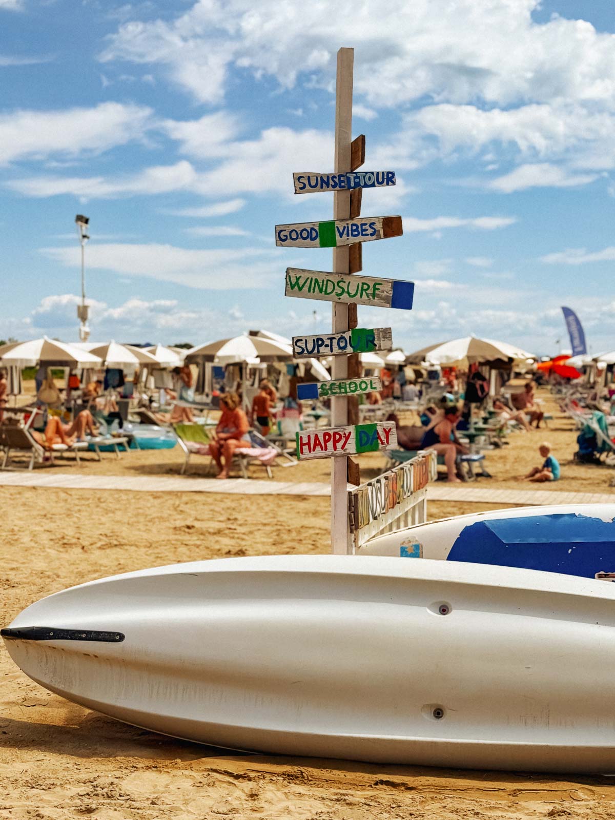 Warto również wspomnieć o charakterystycznej latarni morskiej Faro di Punta Tagliamento, będącej jednym z symboli Bibione, oraz o licznych trasach rowerowych i spacerowych prowadzących przez sosnowe lasy i nadmorskie laguny. Miasteczko tętni życiem szczególnie latem, oferując liczne wydarzenia, koncerty i wieczorne targi, które przyciągają zarówno dorosłych, jak i dzieci. Zapraszam do dalszej części wpisu, w którym opowiem Wam, co ciekawego robiliśmy z naszymi chłopcami i Arianką w Bibione. 👇