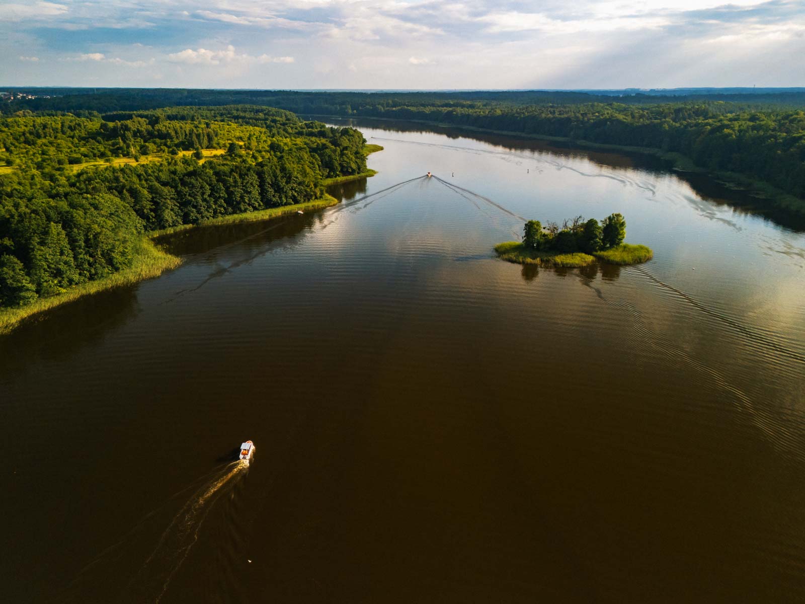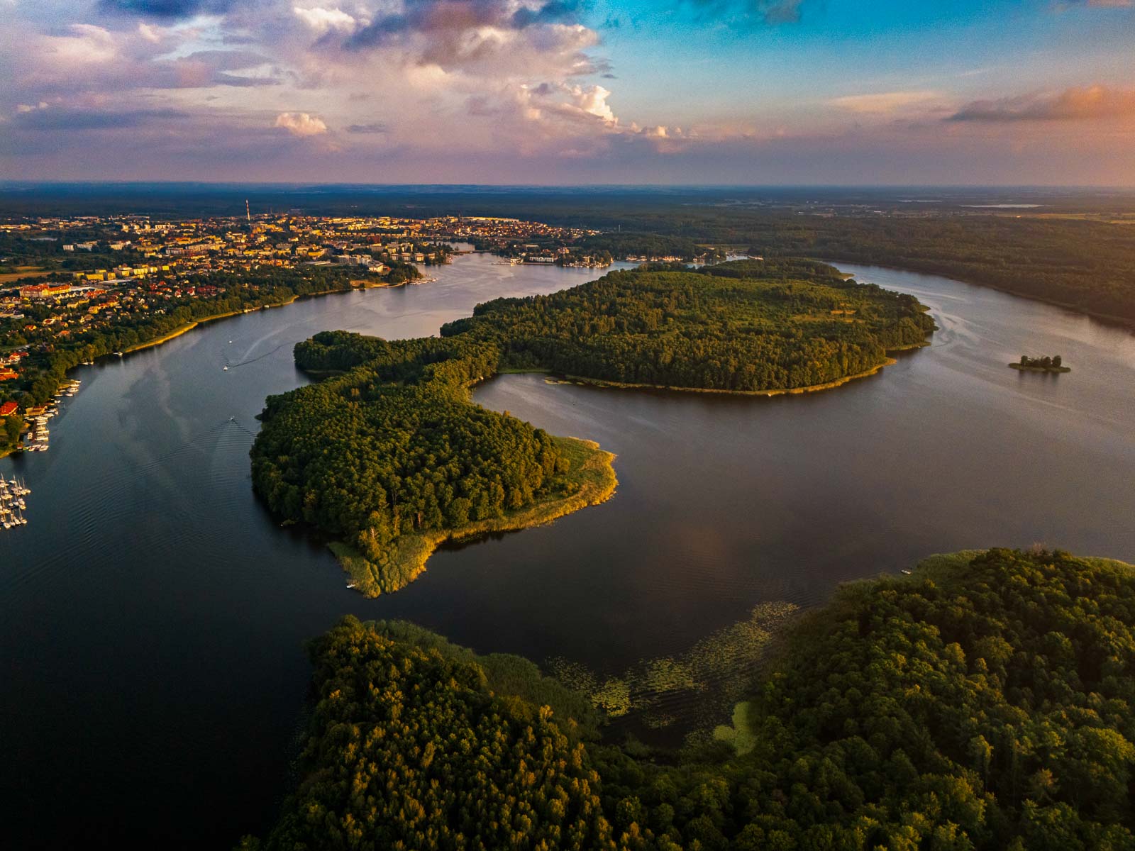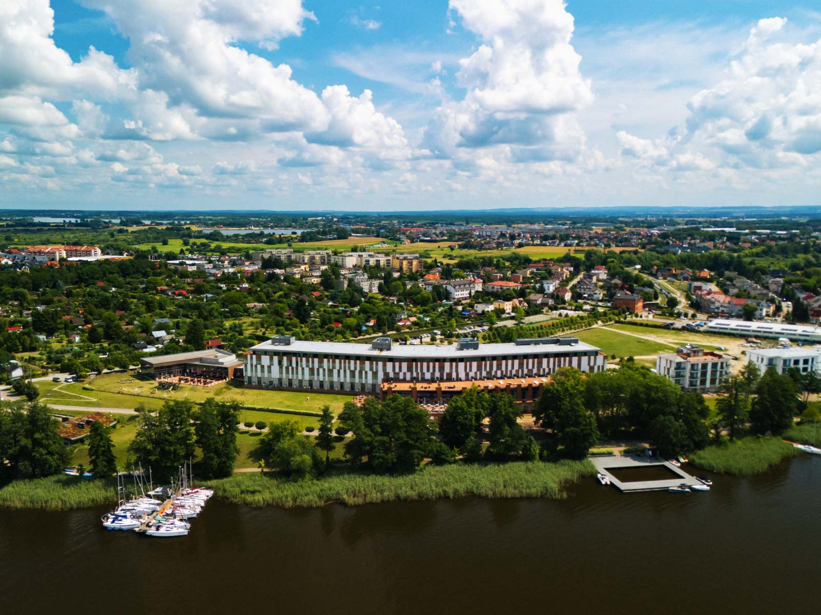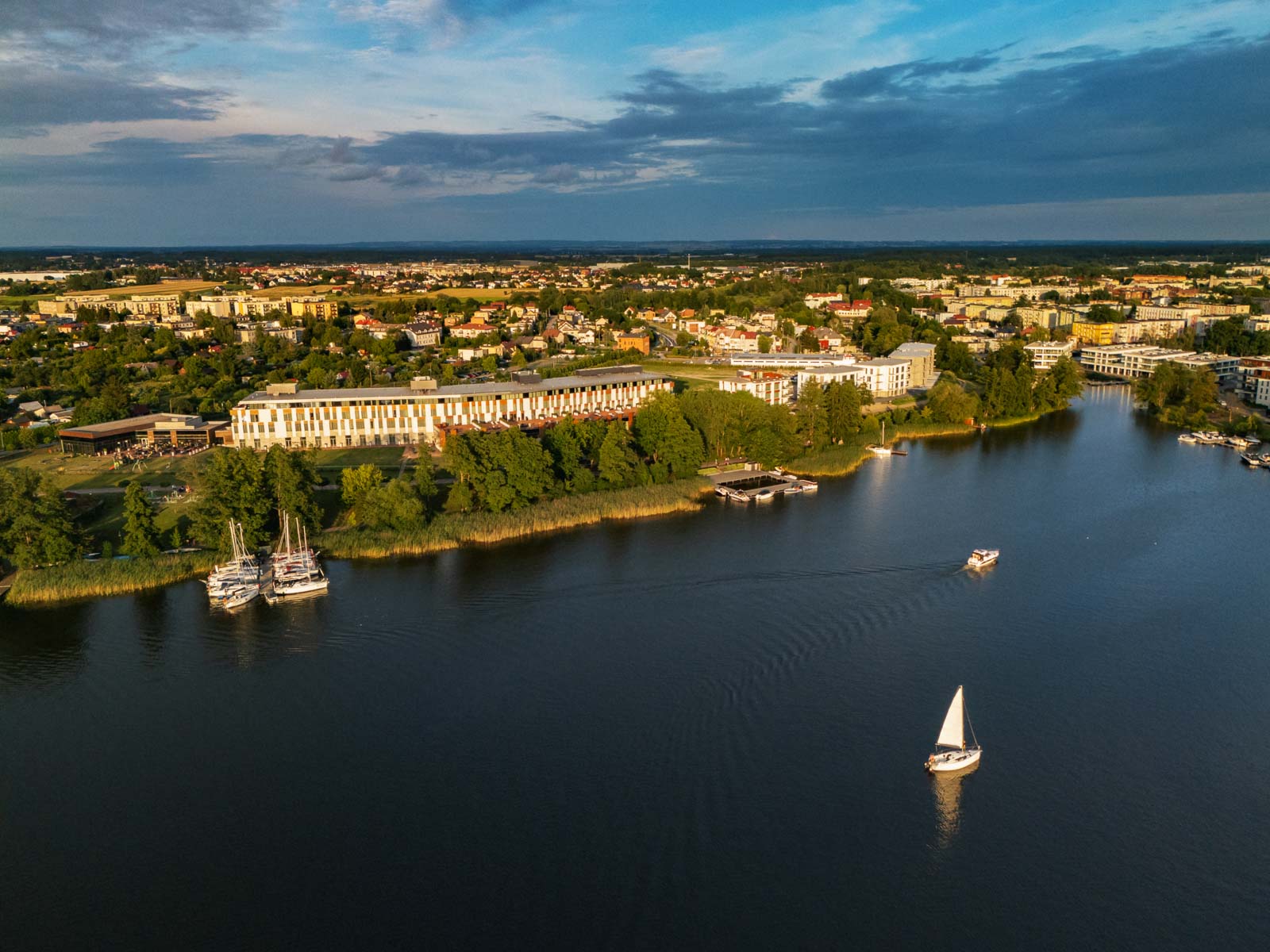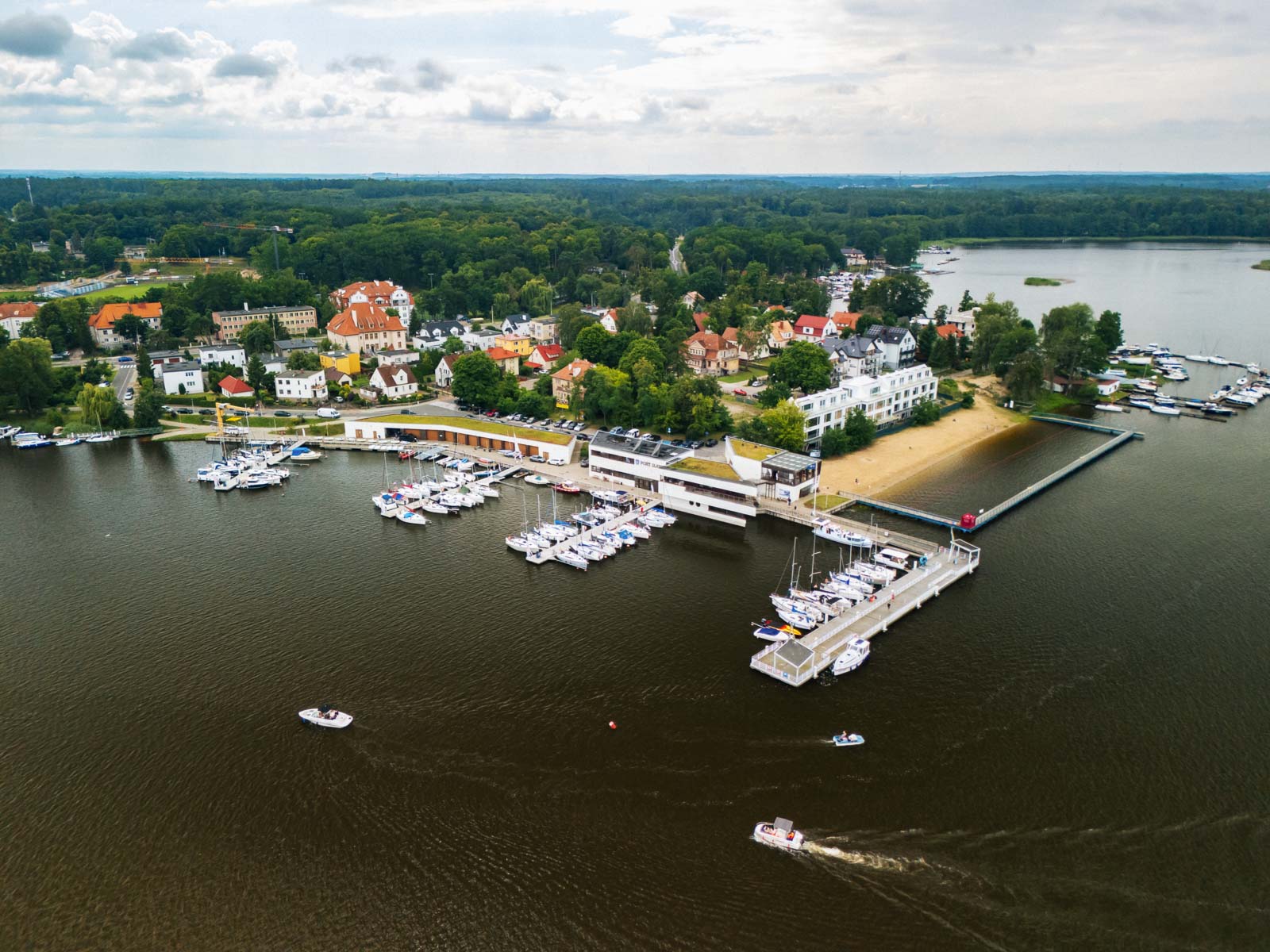 Nowoczesnej marinie, gdzie latem życie płynie żeglarskim tempem. Warto tu podjechać. Czekają na Was: widok na całe jezioro, restauracja z tarasem, wypożyczalnia sprzętu wodnego. Można usiąść na chwilę, popatrzeć na łódki i złapać chwilę oddechu.