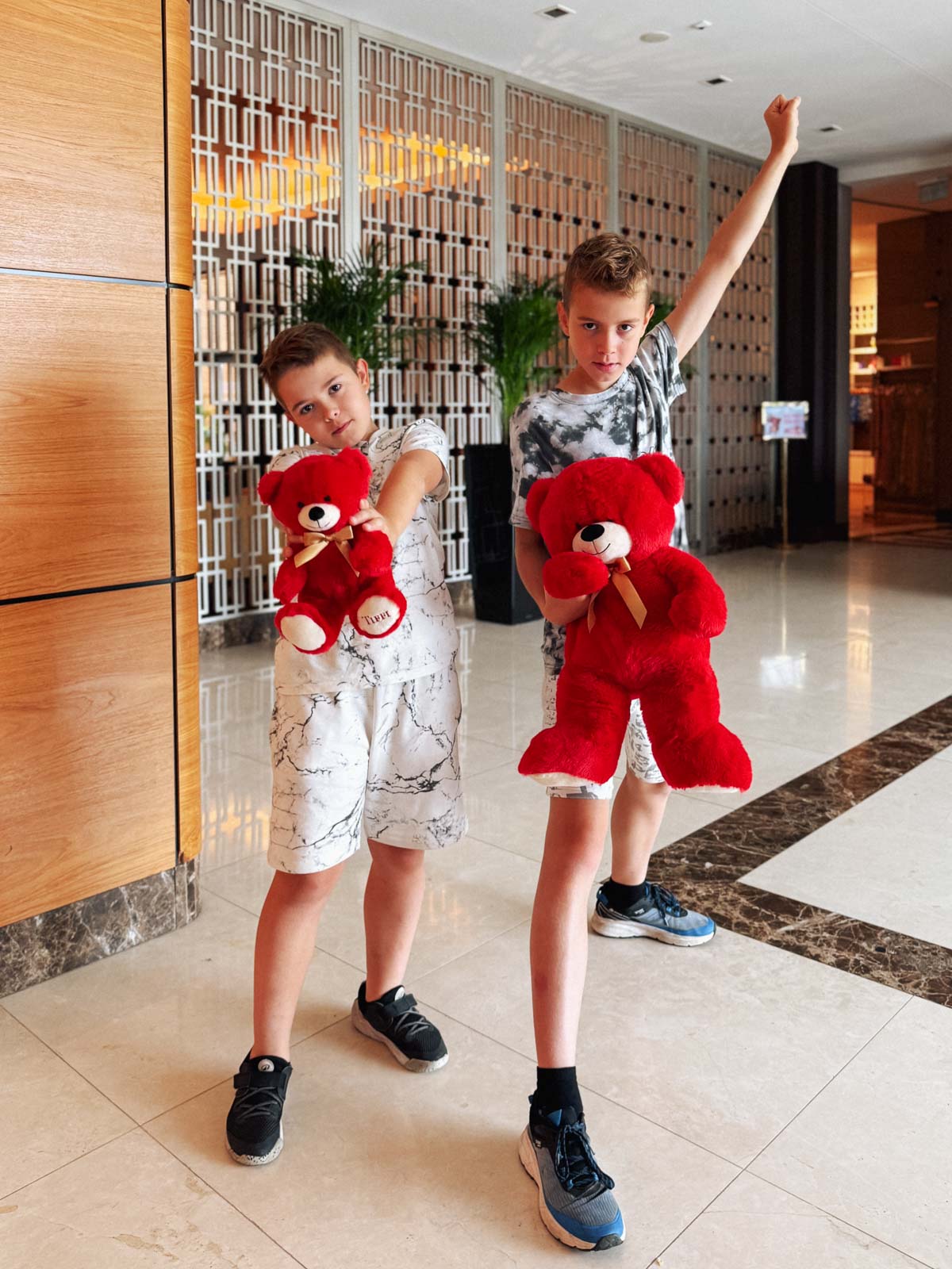 Wśród nowości w Grand Hotelu Tiffi pojawiły się czerwone misie – dostępne w dwóch rozmiarach! To idealna pamiątka z pobytu: misia można po prostu kupić w hotelowym sklepie albo… zdobyć za darmo, zapełniając specjalną kartę z pieczątkami za różne aktywności lub zakupy. Dla dzieci (i nie tylko!) to super motywacja do wspólnej zabawy i kolekcjonowania wspomnień z wakacji.