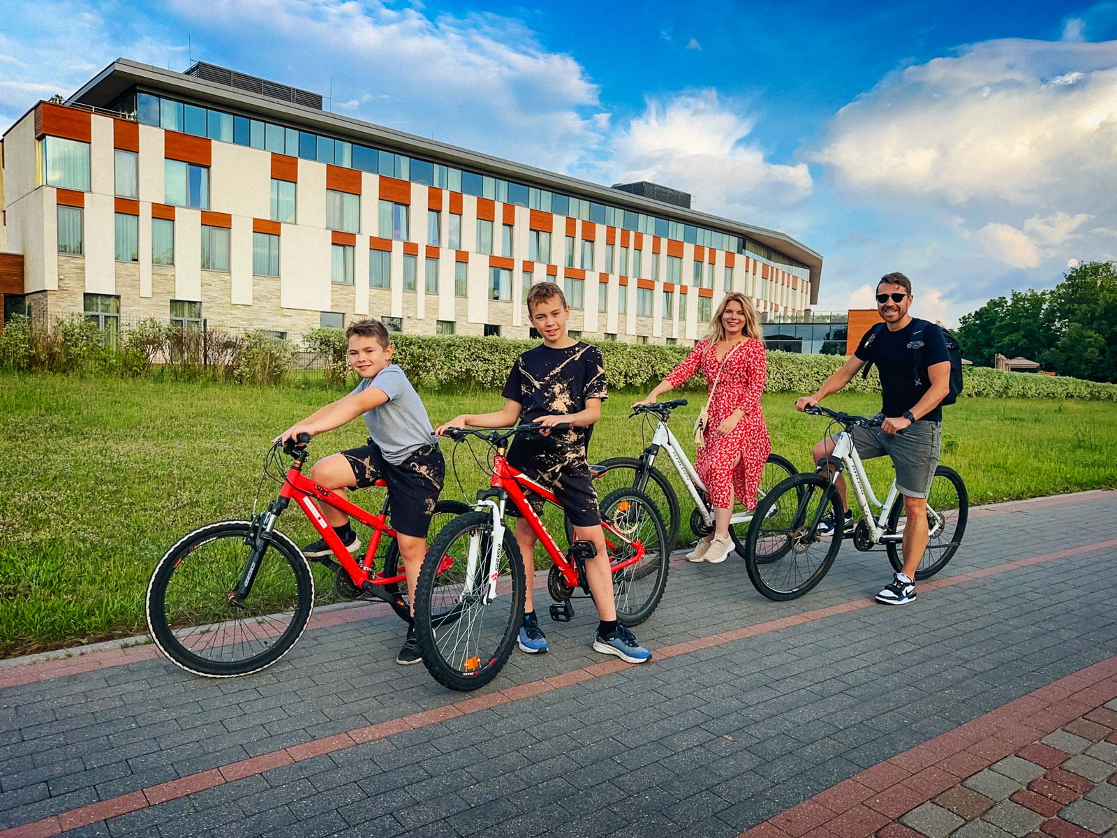 Spokojnie, to jeszcze nie koniec wrażeń! Czas się rozruszać i zobaczyć warmińskie krajobrazy z nieco innej perspektywy. W hotelu znajdziecie rowery dla każdego, dla dzieci, dorosłych, nawet foteliki dla najmłodszych. Jazda wzdłuż brzegów jeziora to najlepszy sposób, by złapać dystans, podziwiać widoki i zatrzymać się na placu zabaw, siłowni lub pomoście. Najdłuższa trasa rowerowa ma 514km linii brzegowej! My wybraliśmy jednak luźniejszą i dużo krótszą trasę, ze sporą ilości atrakcji.