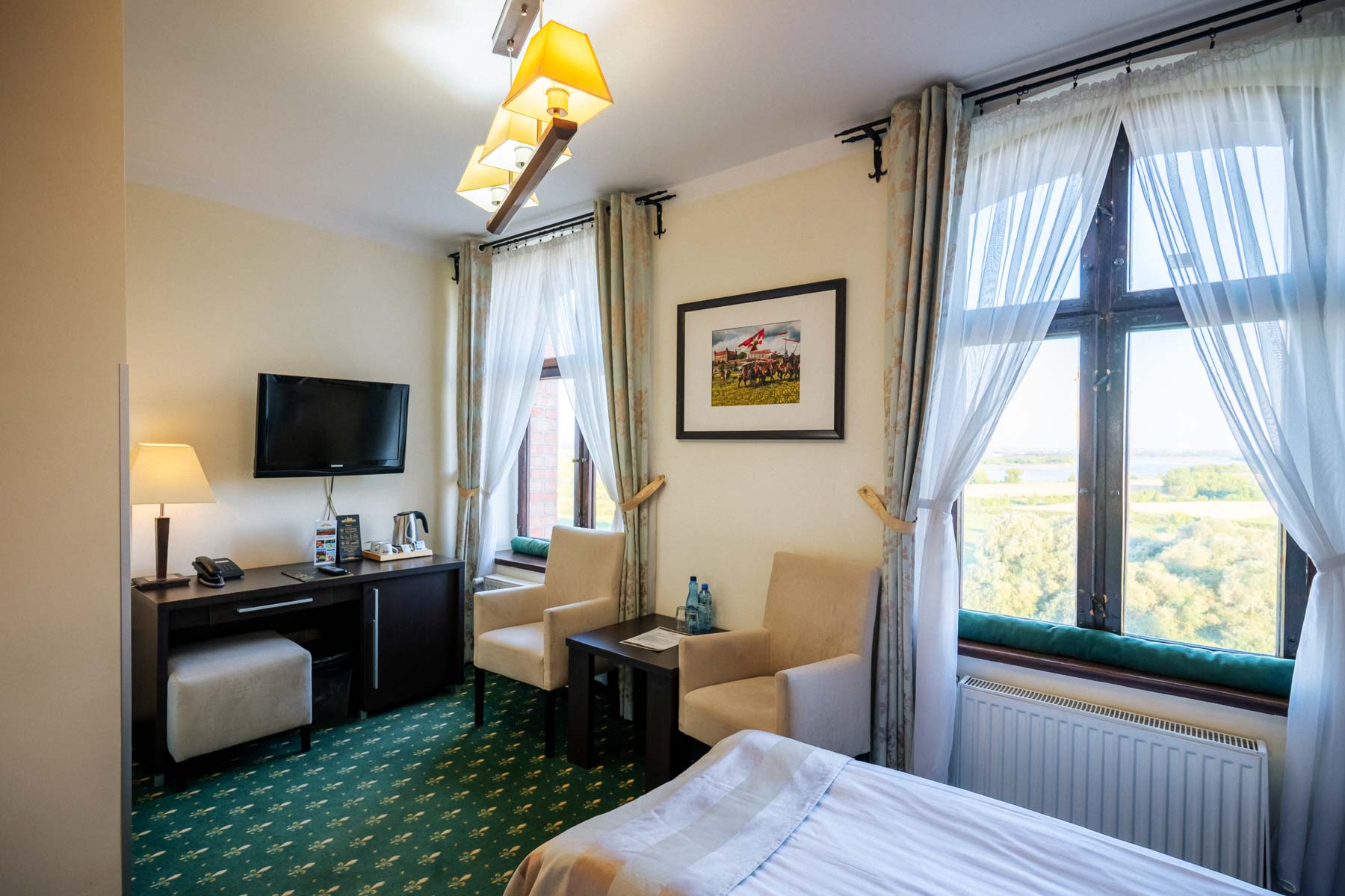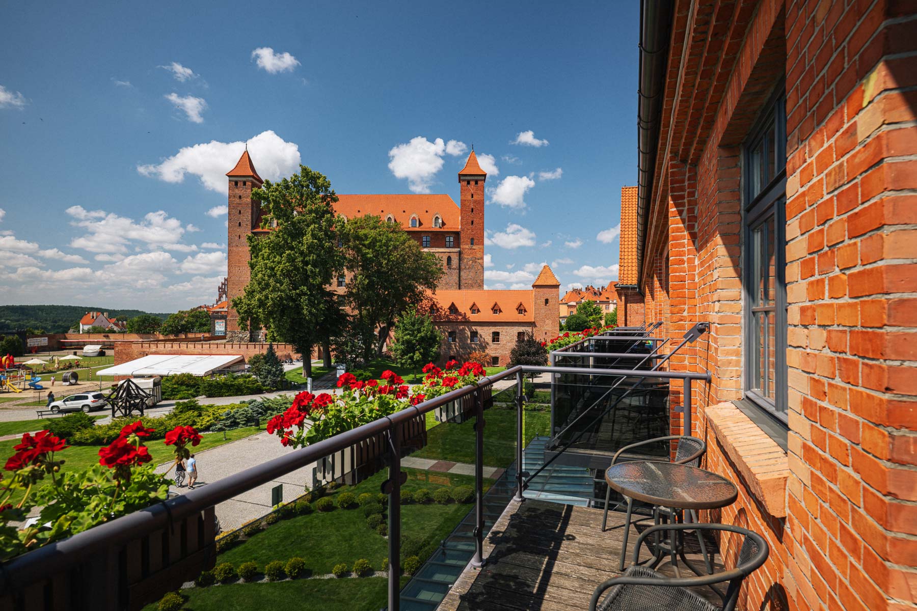 Na nas największe wrażenie zrobił widok z balkonu. Był naprawdę niesamowity! Rozciągała się z niego panorama całego terenu oraz widok na monumentalny Zamk Gniew. Doceniliśmy też bliskość restauracji, która znajduje się na parterze hotelu rycerskiego, dzięki czemu na śniadanie czy obiadokolację mieliśmy zaledwie kilka kroków.