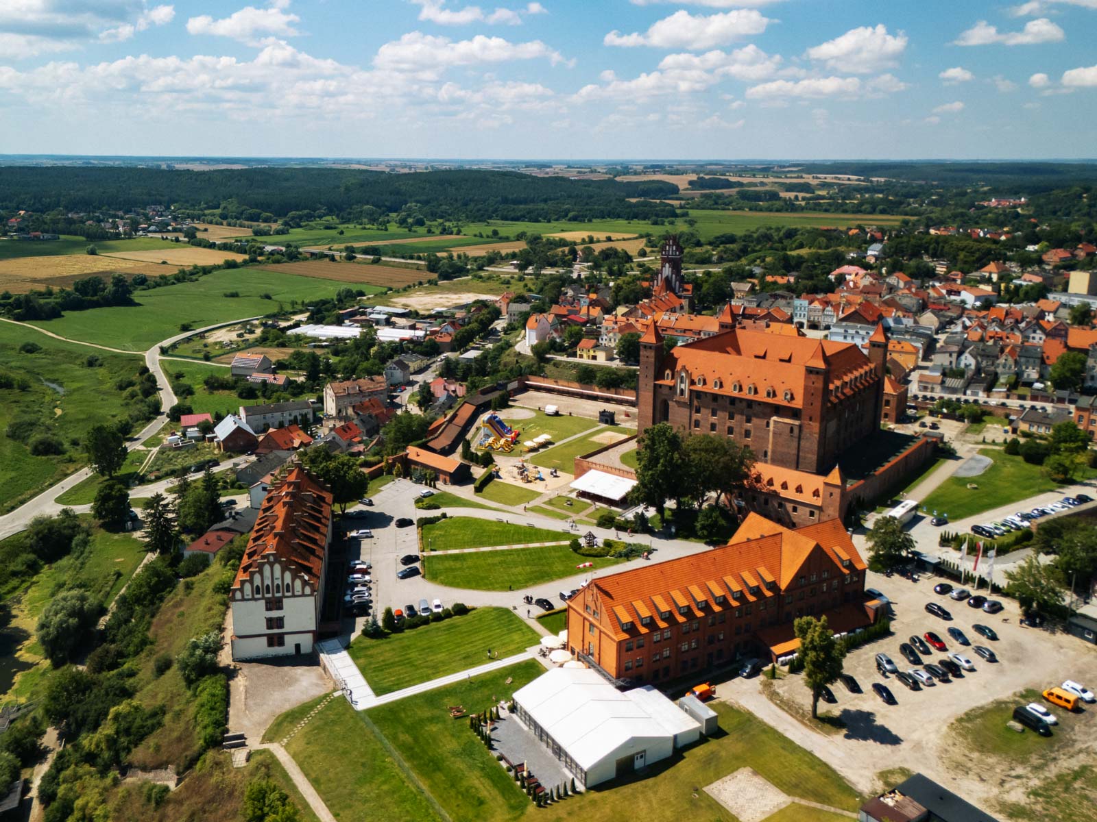 Zamek to potężna, średniowieczna twierdza zbudowana przez Zakon Krzyżacki na przełomie XIII-XIV wieku. Przez wieki pełnił ważną rolę strategiczną i polityczną. Zamek ma cztery skrzydła, wewnętrzny dziedziniec, masywną wieżę główną i piękne krużganki. Dziś można nie tylko zwiedzać historyczne pomieszczenia: kaplicę, izbę tortur, sale wystawowe, dziedziniec, ale także uczestniczyć w inscenizacjach rycerskich i warsztatach dawnych rzemiosł. Na miejscu działa hotel i restauracja, oferujące komfortowy pobyt i regionalne smaki. Warto dodać, że zwiedzanie zamku odbywa się wyłącznie z przewodnikiem, trwa około godziny i jest dodatkowo płatne.