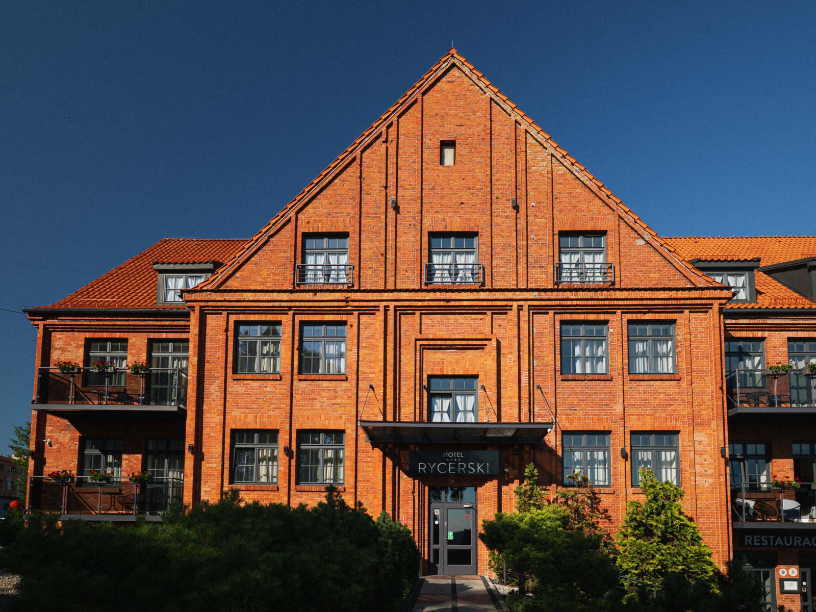 Hotel Rycerski wybudowany został jako koszary wojskowe w latach 30. XX wieku. W 2013 roku budynek został zaadaptowany na czterogwiazdkowy hotel. Nowoczesne wyposażenie i oferta gastronomiczna (bufet śniadaniowo-obiadokolacyjny, restauracja à la carte) to wynik przebudowy i rearanżacji dawnych przestrzeni.