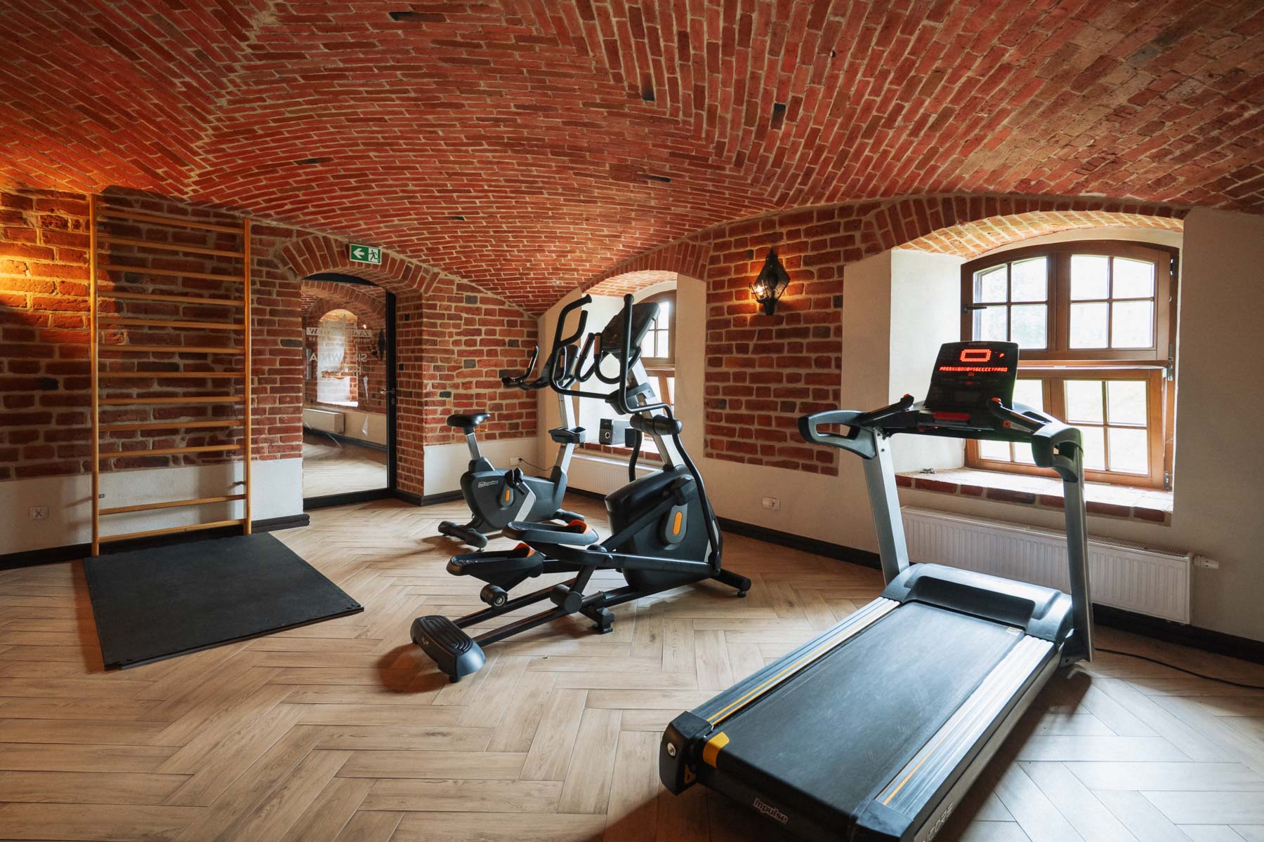 Zamkowa siłownia pozwala zarówno na intensywne treningi, jak i spokojniejsze ćwiczenia. Do dyspozycji są m.in. profesjonalne maszyny siłowe, bieżnie, rowerki treningowe, orbitreki oraz inne urządzenia wspomagające trening całego ciała. Obiekt jest dostępny dla gości przez całą dobę, co umożliwia elastyczne korzystanie z siłowni o dowolnej porze.