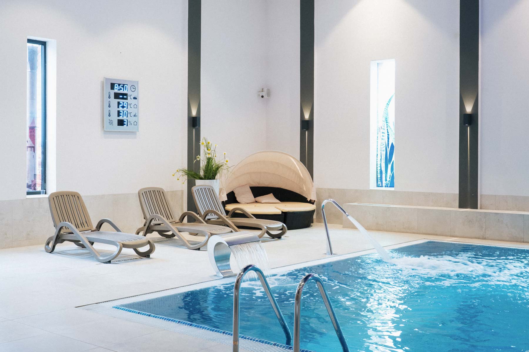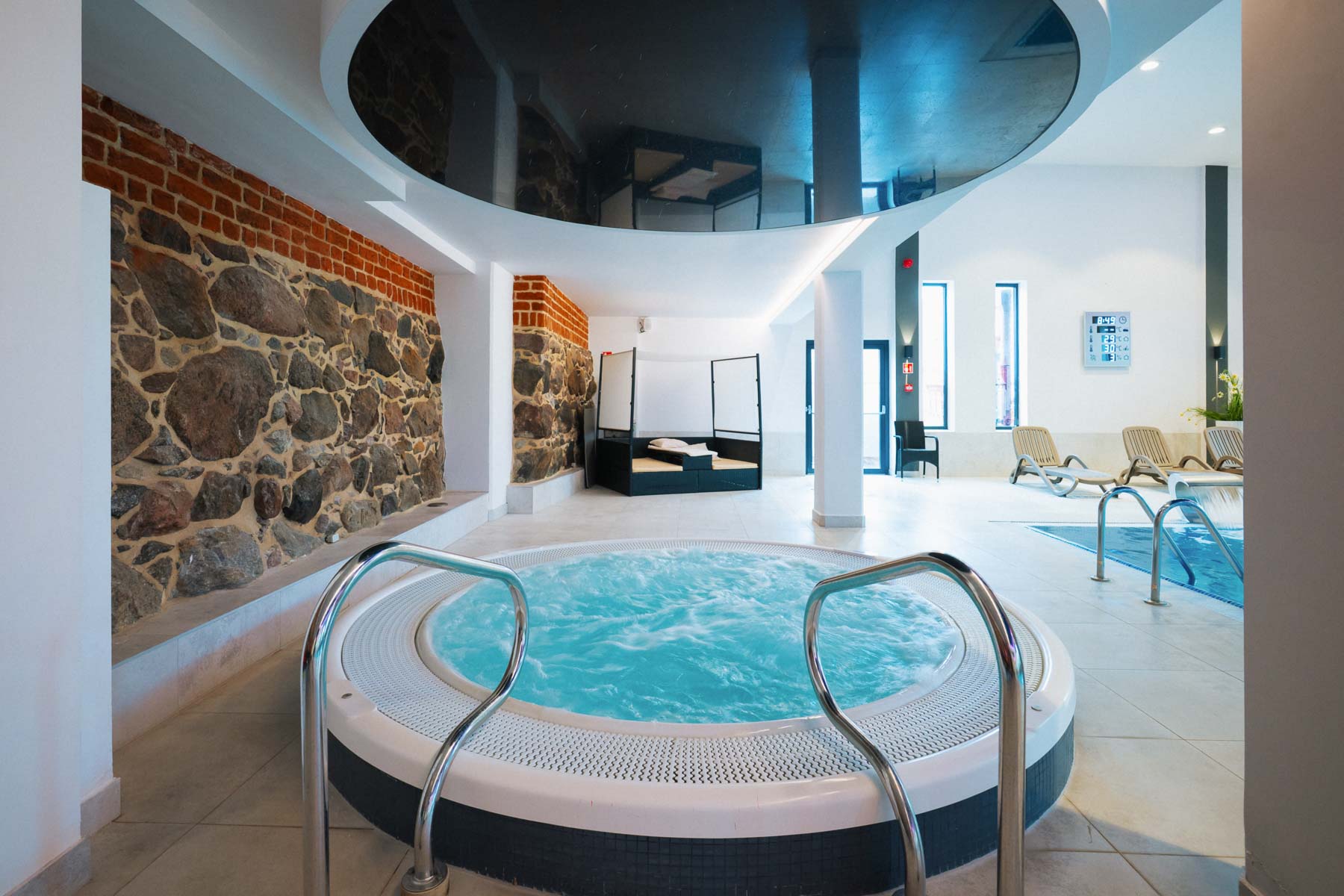 Strefa wellness i basenowa w Hotelu Zamek Gniew to prawdziwa oaza spokoju i regeneracji. Znajduje się naprzeciw recepcji i jest dostępna codziennie w godzinach 9:00–21:00. W piątki i soboty w godzinach 21:00–23:00 strefa zarezerwowana jest wyłącznie dla osób dorosłych, co pozwala w pełni cieszyć się spokojną, kameralną atmosferą. Goście mogą korzystać z przestronnego krytego basenu wyposażonego w dwa stanowiska do masażu wodnego oraz brodzika z atrakcjami dla dzieci, takimi jak zjeżdżalnia wodna. Dla poprawy samopoczucia i oczyszczenia organizmu dostępne są także trzy rodzaje saun: sucha, parowa i na podczerwień.