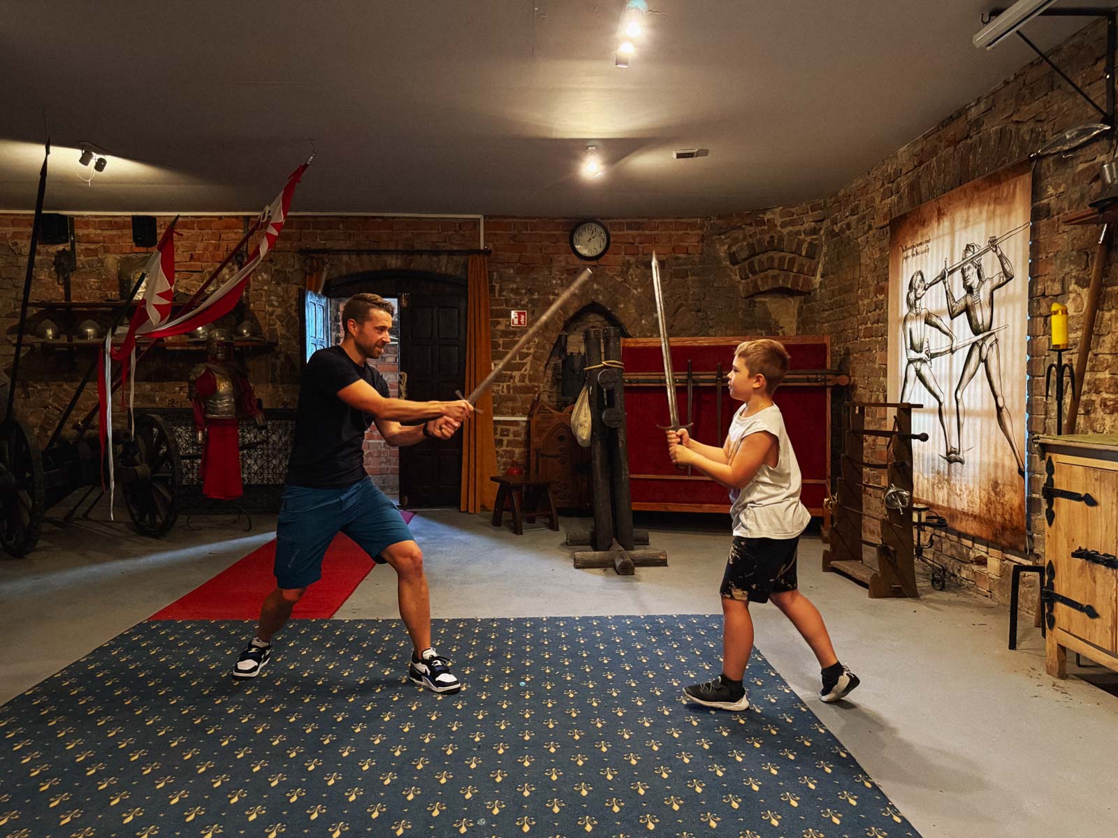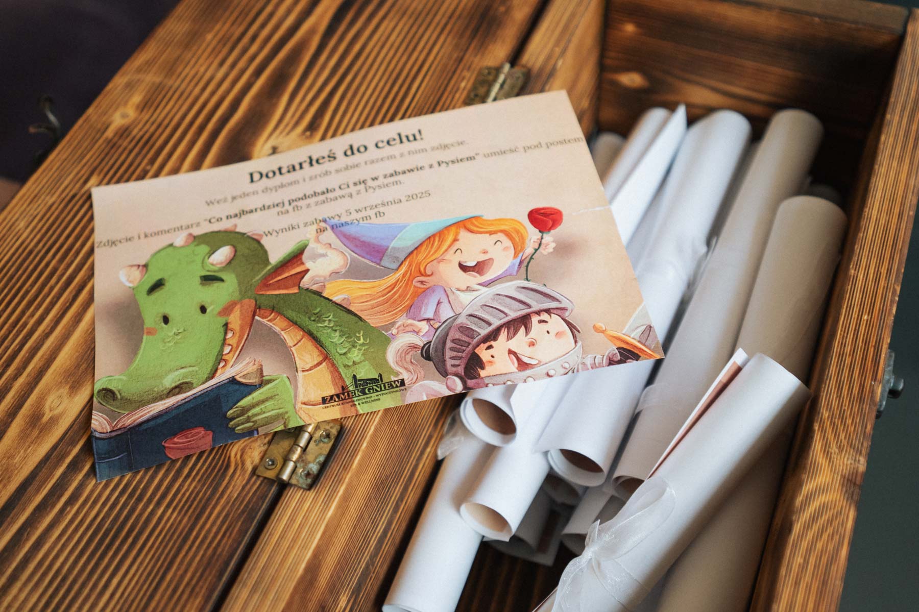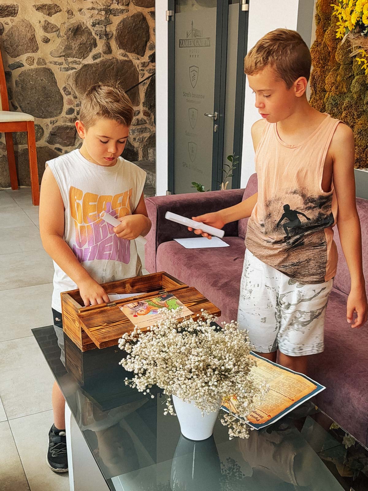 Podczas naszego pobytu zagraliśmy także w grę terenową „Pysio i sekrety starego zamku”. To wyjątkowa atrakcja, która przenosi uczestników w świat przygód związanych z zamkiem, angażując ich w rozwiązywanie zagadek i odkrywanie tajemnic historycznych zakątków. My bardzo lubimy tego typu formy zabawy, gdyż pozwalają zarówno dzieciom, jak i dorosłym aktywnie poznawać historię zamku w interaktywny i atrakcyjny sposób.