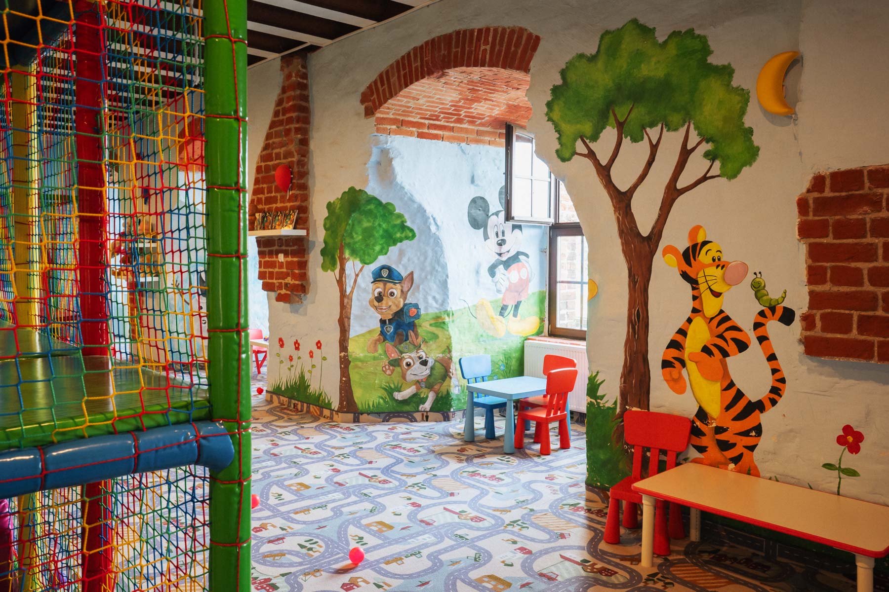 Sala zabaw była zaraz po dmuchańcach ulubionym miejscem zabaw naszych chłopców. „Zamkowy Kids Club” jest przestronny i wyposażony w duży małpi gaj sięgający sufitu. Znajdzecie tam też: basen z kulkami, trampolinę, gry komputerowe oraz zabawki dostosowane do różnych grup wiekowych. Dodatkowo na zewnątrz znajduje się plac zabaw z piaskownicą, huśtawkami i zjeżdżalniami oraz wspomniane wcześniej dmuchańce, co sprawia, że najmłodsi mają zapewnioną rozrywkę i bezpieczną przestrzeń do aktywnego wypoczynku przez cały pobyt.
