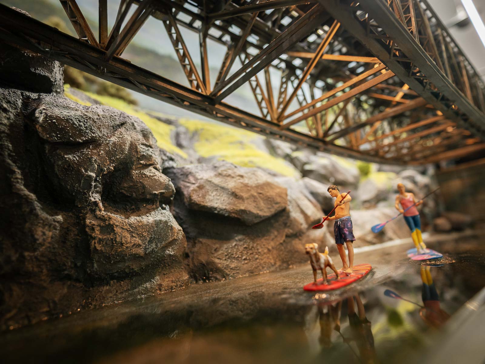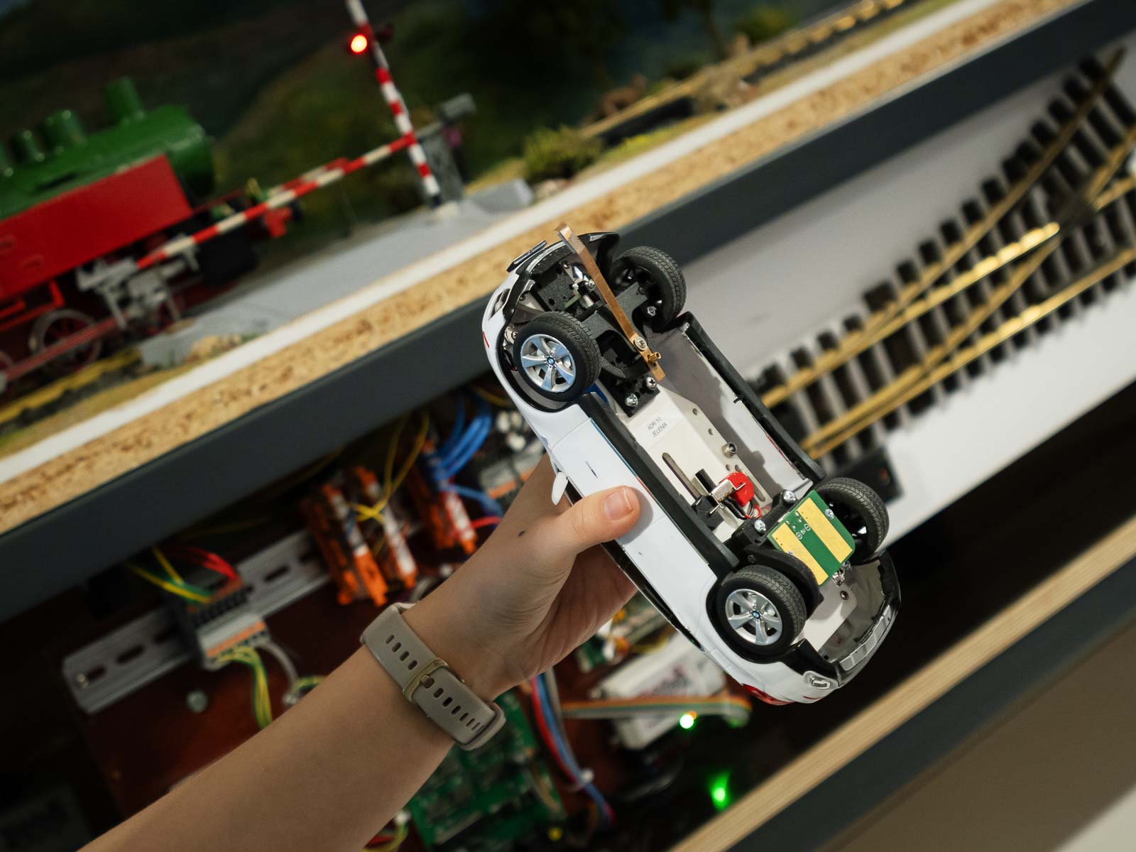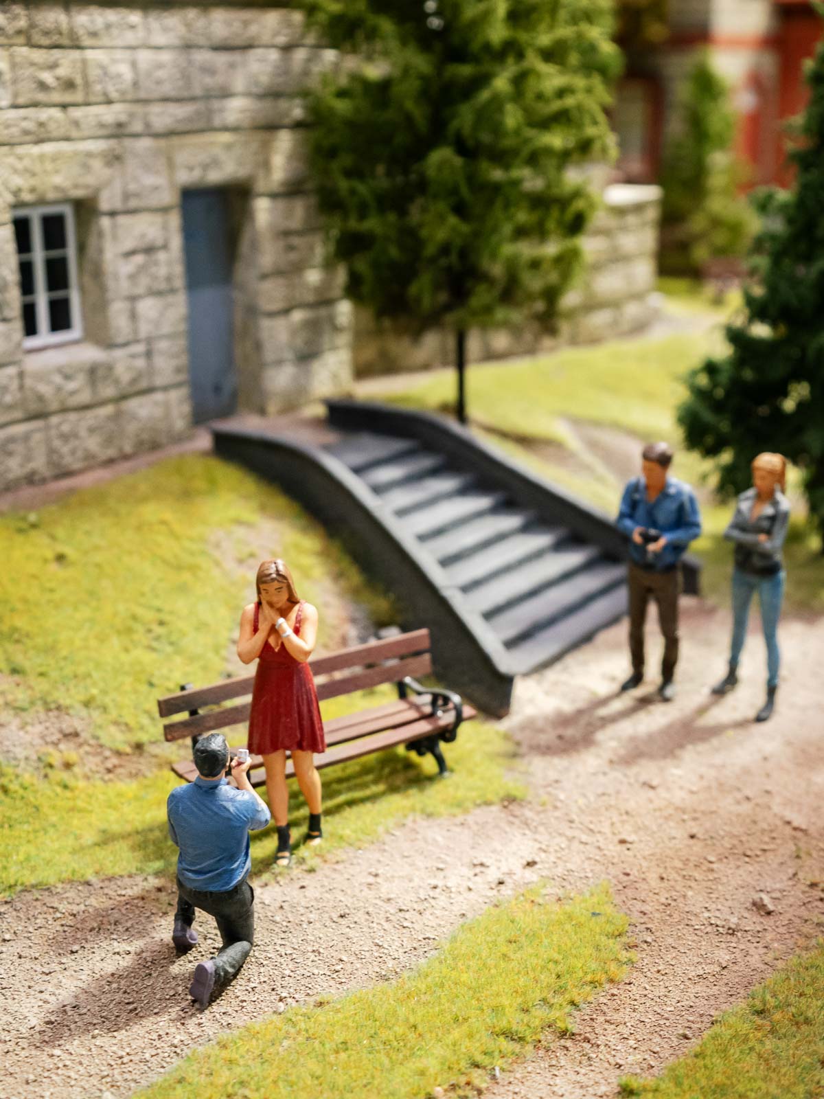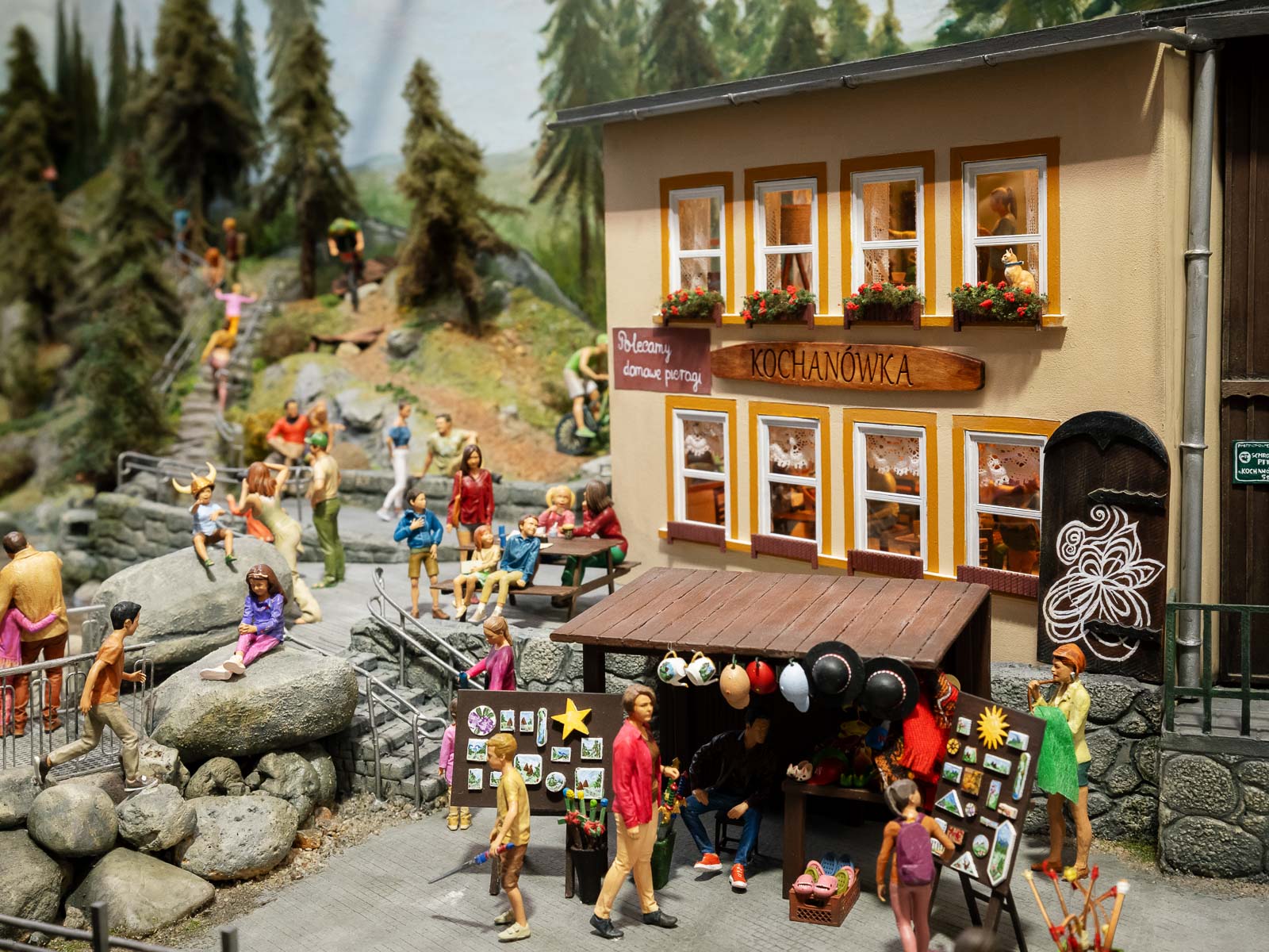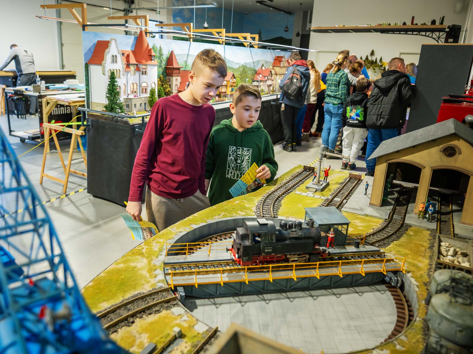 Według nas – jak najbardziej tak! Było bardzo dużo dzieci, a naszym chłopcom wizyta bardzo się podobała. Myślę, że głównie dzięki wyszukiwarce, bo uwielbiają tego typu zabawy. Wspaniałą robotę wykonała także pani przewodnik: często zadawała pytania dzieciom i obiecała, że je później nagrodzi oraz angażowała we wszelkie zadania. Dodtkowo w Modelarni można było samodzielnie wprawić w ruch kilka elementów, naciskając przycisk, sterować pociągiem (szczególnie jego prędkością), zobaczyć makietę za dnia i w nocy i oczywiście pobawić się w rozpoznawanie budynków lub miejsc, w których już się było – np. Wodospad Szklarki czy Rynek w Jeleniej Górze. Dla dzieci sporym zaskoczeniem były także dwie figurki, które po podniesieniu krzyczą: „O nie! Ludzie! Odłóż mnie na miejsce!” – to zabawna forma alarmu antykradzieżowego. Na makiecie poukrywane są też figurki surrealistycznych postaci z trendu „Italian Brainrot”, np. Cappuccina Ballerina czy Tralalero Tralala.