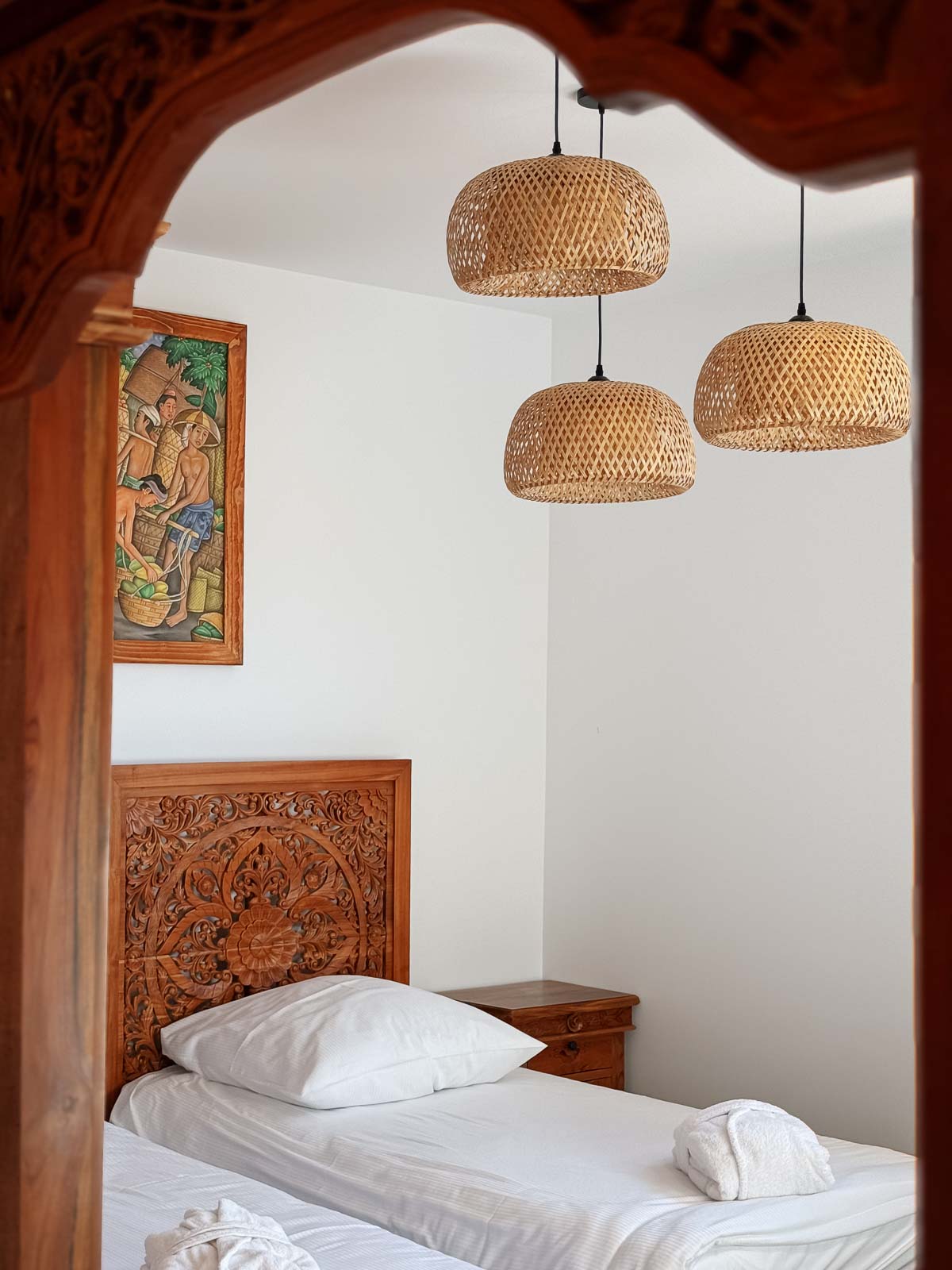 Największym zaskoczeniem było jednak wejście do domku zaprojektowanego w stylu balijskim. Ciepłe drewno, orientalne dekoracje i zapach kadzideł – aż zamarzyła mi się podróż do Azji! Więcej o tym miejscu przeczytacie w dalszej części wpisu, a house tour także znajdziecie na naszych social mediach.
