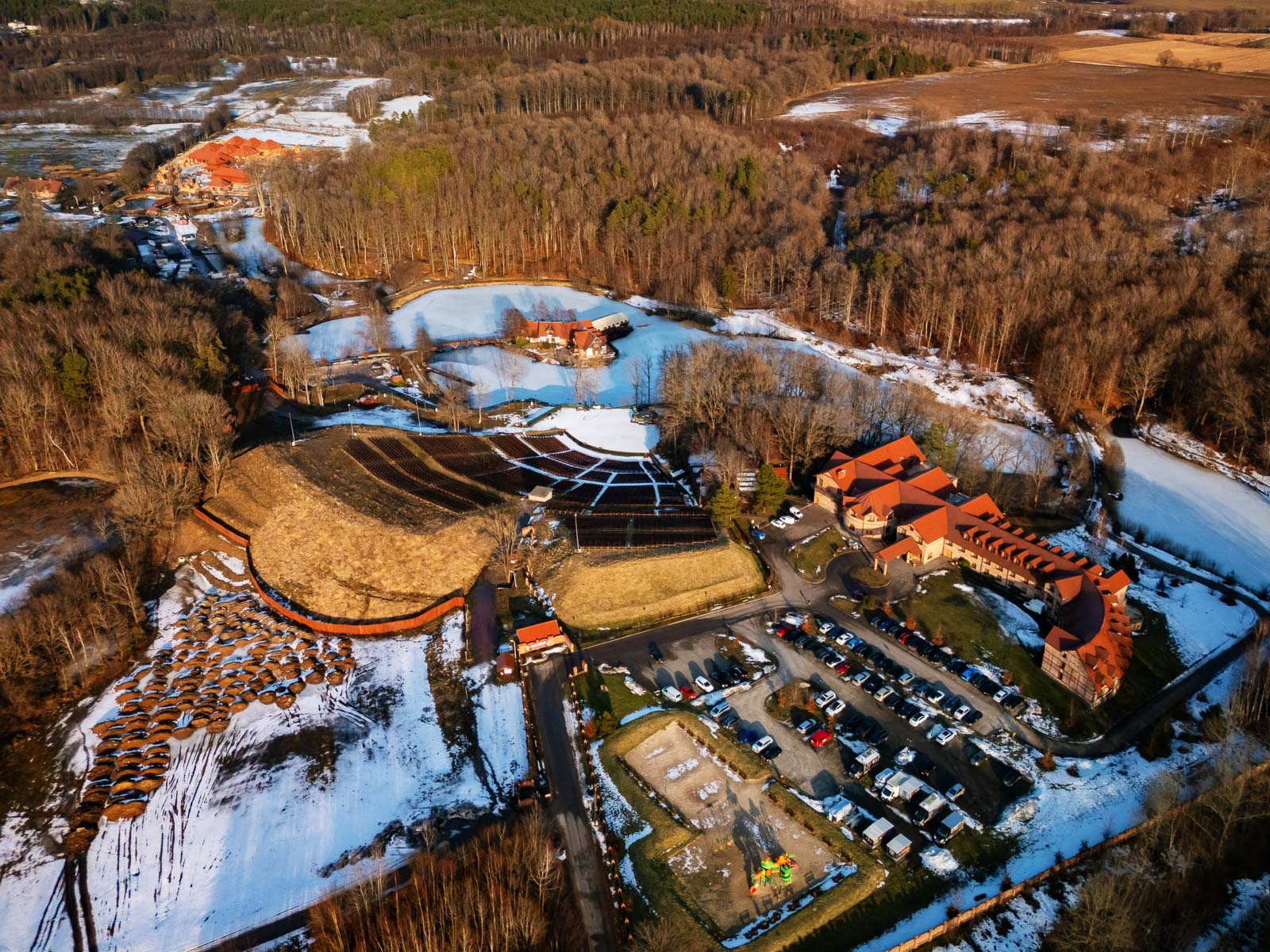 🏨 Luksusowy resort na Pomorzu, między Ustką a Słupskiem. Położony na 120 ha prywatnego terenu ze ścieżkami spacerowymi i rowerowymi, otoczony lasami, nad jeziorem.