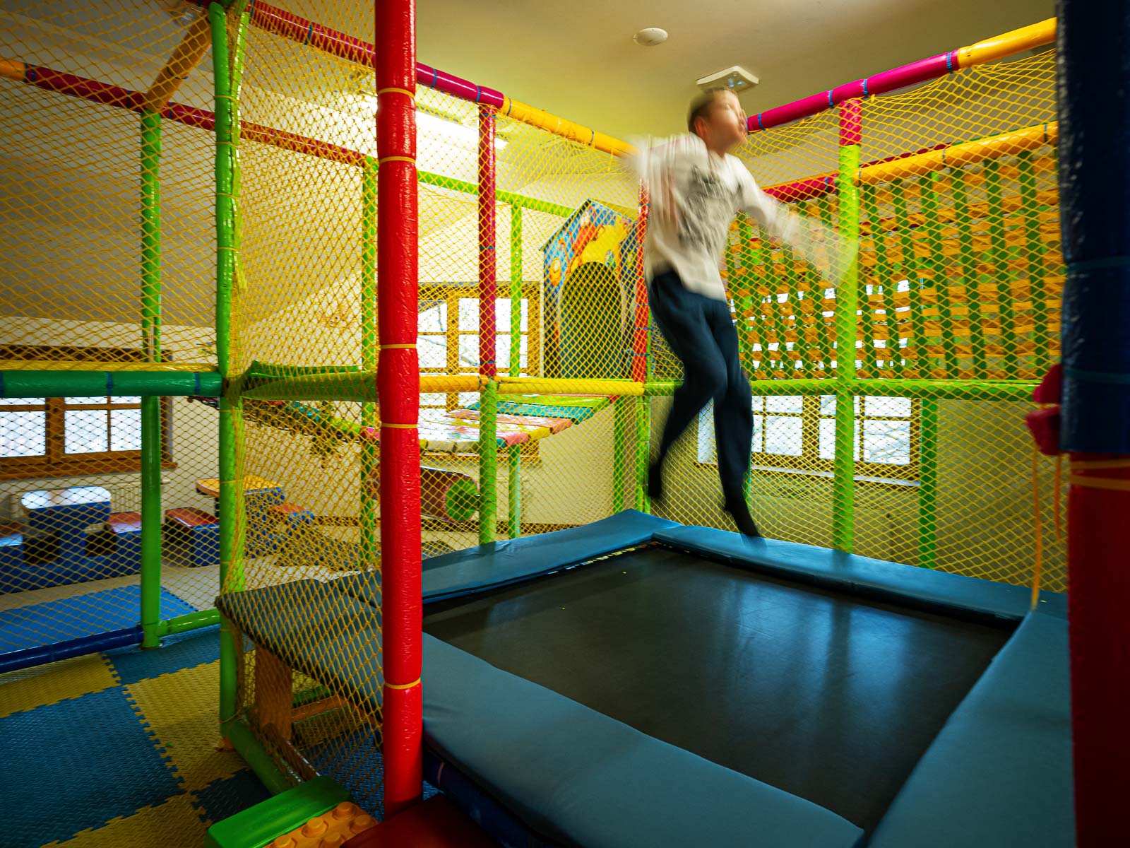 • Dwie sale zabaw z małpim gajem i zabawkami.