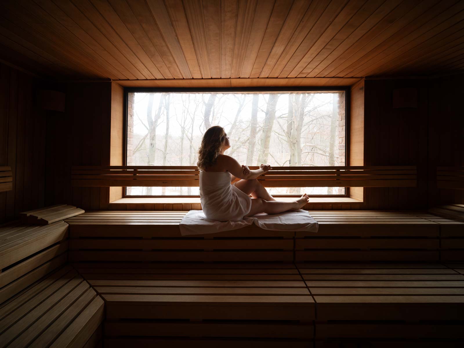 Strefa saun znajduje się tuż obok i przechodzi się do niej prosto z basenu. Można zrelaksować się w łaźni parowej, w saunie suchej oraz aromaterapii. Zarówno z basenu, jak i strefy saun można korzystać w godzinach od 9:00 do 21:00.