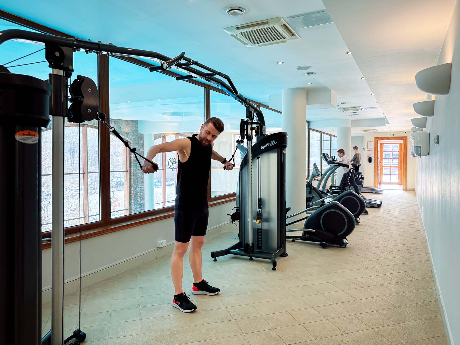Strefa basenowa wraz z saunarium i SPA jest jedną z najlepszych, z których korzystaliśmy do tej pory. Basen ma ogromne przeszklenia i jest pięknie zaprojektowany. Pomieszczenie jest wysokie i przestronne, a rodziny z dziećmi mogą korzystać z płytkiego brodzika oraz jacuzzi. Na wyposażeniu jest także sporo dodatków dla dzieci: rękawków, zabawek, a nawet siatka do wodnych sportów. Naszym chłopcom bardzo spodobały się te dodatki i chętnie z nich korzystali. Ważną informacją jest także brak ratownika na obiekcie, więc o bezpieczeństwo dzieci i rozwagę musicie dbać sami. W pokoju czekają na was szlafroki, a przy recepcji dostajecie ręczniki basenowe.